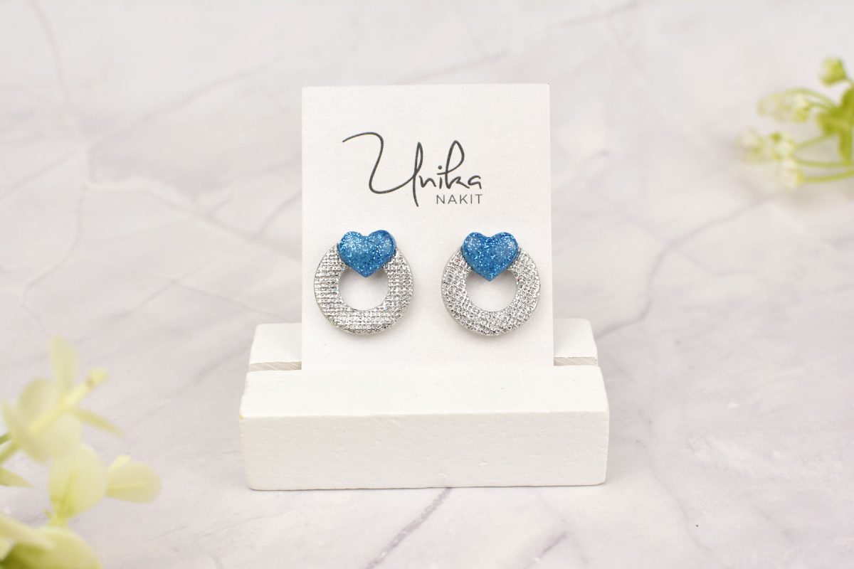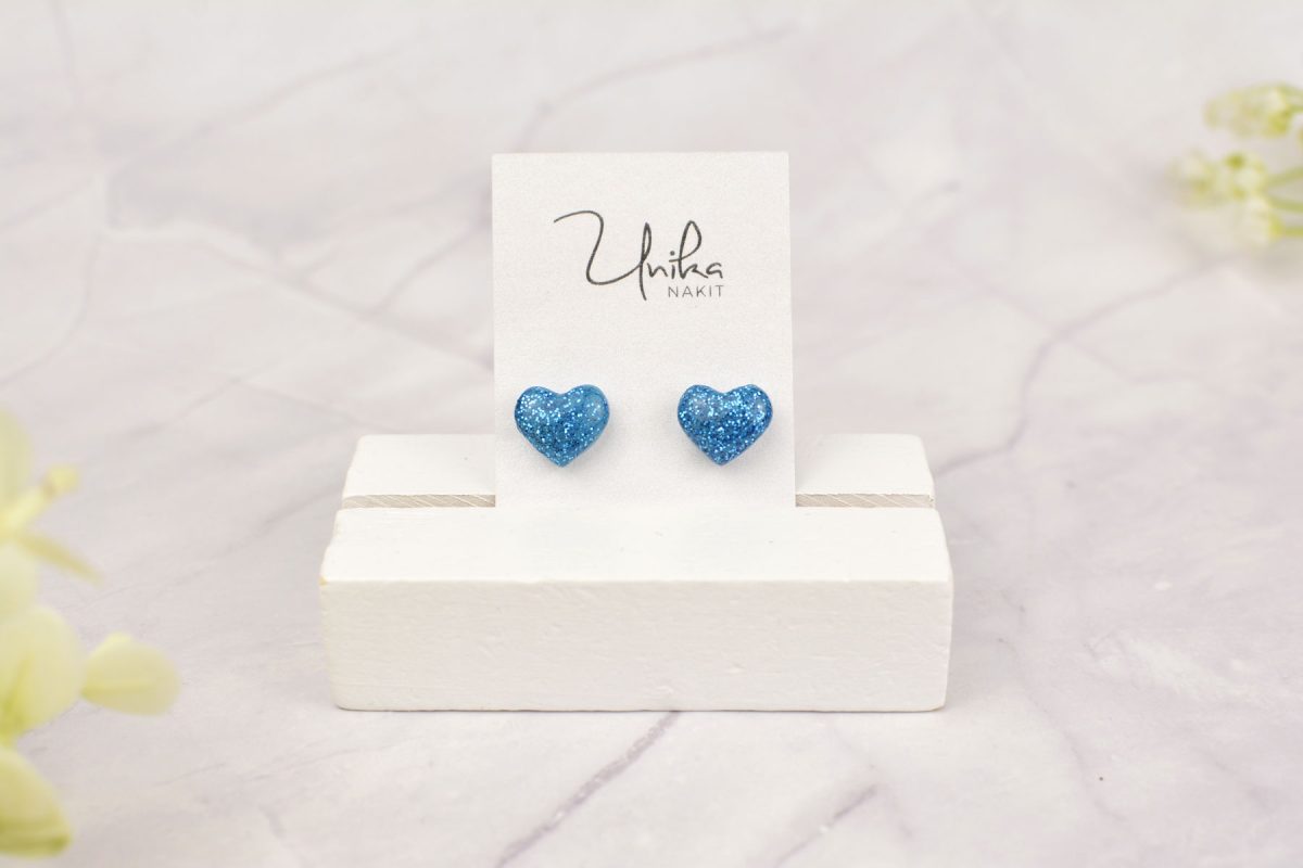 Mali uhani srček – premer 1.2 cm. Nastavki so iz kakovostnega nerjavečega jekla s silikonskimi in kovinskimi zatiči (prejmeš oba). Po želji lahko izbereš titan nastavke (dodaj jih v košarico).