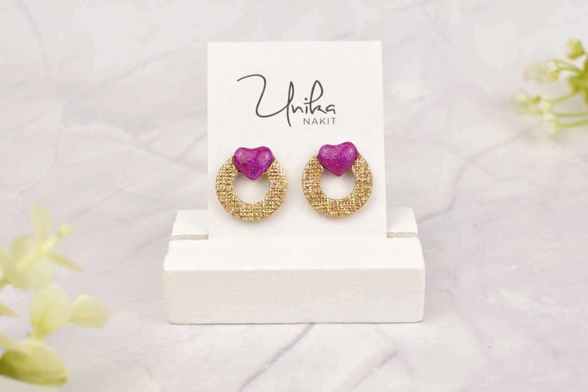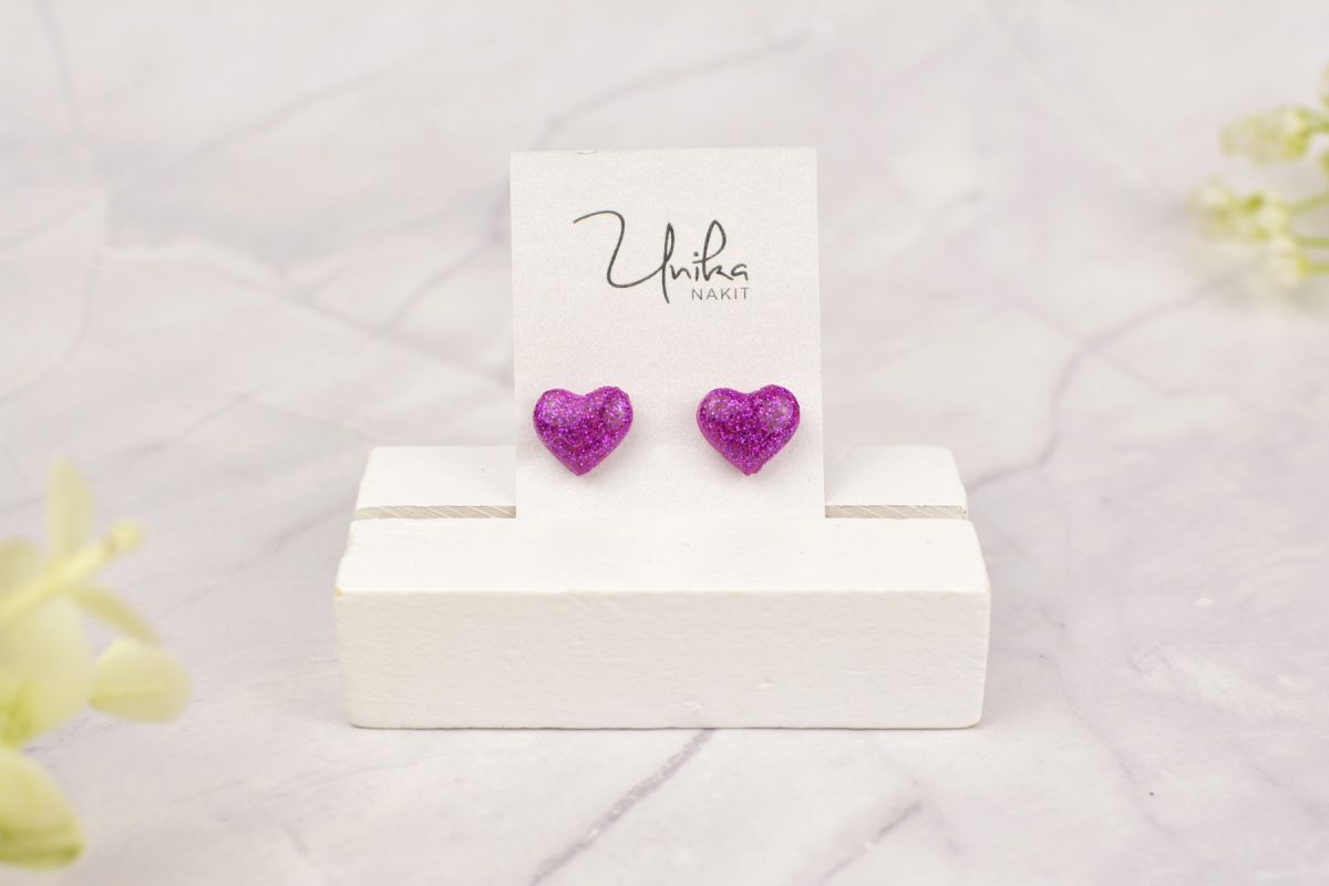 Mali uhani srček – premer 1.2 cm. Nastavki so iz kakovostnega nerjavečega jekla s silikonskimi in kovinskimi zatiči (prejmeš oba). Po želji lahko izbereš titan nastavke (dodaj jih v košarico).