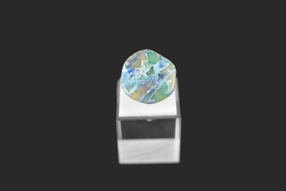Ročno izdelan prstan z edinstvenim videzom kamna in stekla se v svetlobi čudovito zalesketa. Minimalističen, a izjemno opazen – popoln za vse, ki prisegajo na eleganco z umetniškim pridihom. Je lahek, udoben in naravnost zasvoji – ko ga enkrat nosiš, ga nočeš več sneti.