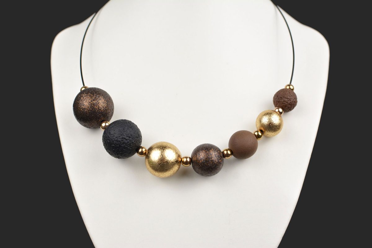 Mere verižice: kroglice Perline so na črnem, elegantnem obročku iz nerjavečega jekla, dolžine 45 cm + 5 cm podaljška.