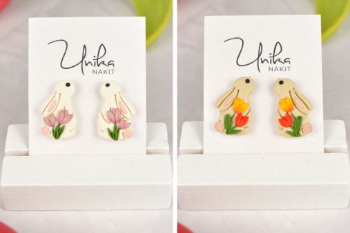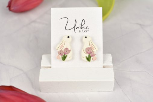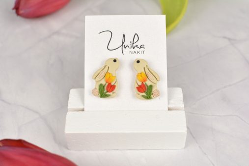 Prikupni uhani Zajček s tulipani združujejo igrivost in nežno eleganco. Ročno izdelan detajl, ki takoj pritegne pogled in pričara nasmeh. 🌷🐰