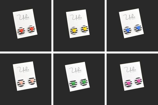 Unikastični črtasti uhani Srček blestijo s črno belimi črtami in z enobarvnim srčkom.