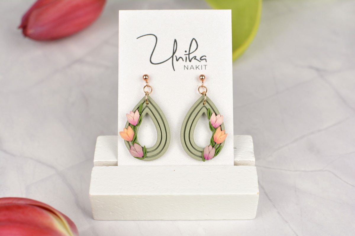 Prikupni uhani Zajček s tulipani združujejo igrivost in nežno eleganco. Ročno izdelan detajl, ki takoj pritegne pogled in pričara nasmeh. 🌷🐰