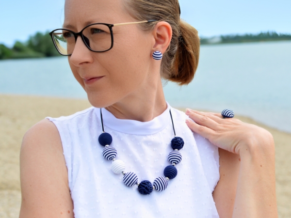 • Modra bela verižica Mornar Elegant - Ročno izdelana verižica - Unika NakitModra bela verižica Mornar Elegant + Ročno izdelana verižica + Unika Nakit